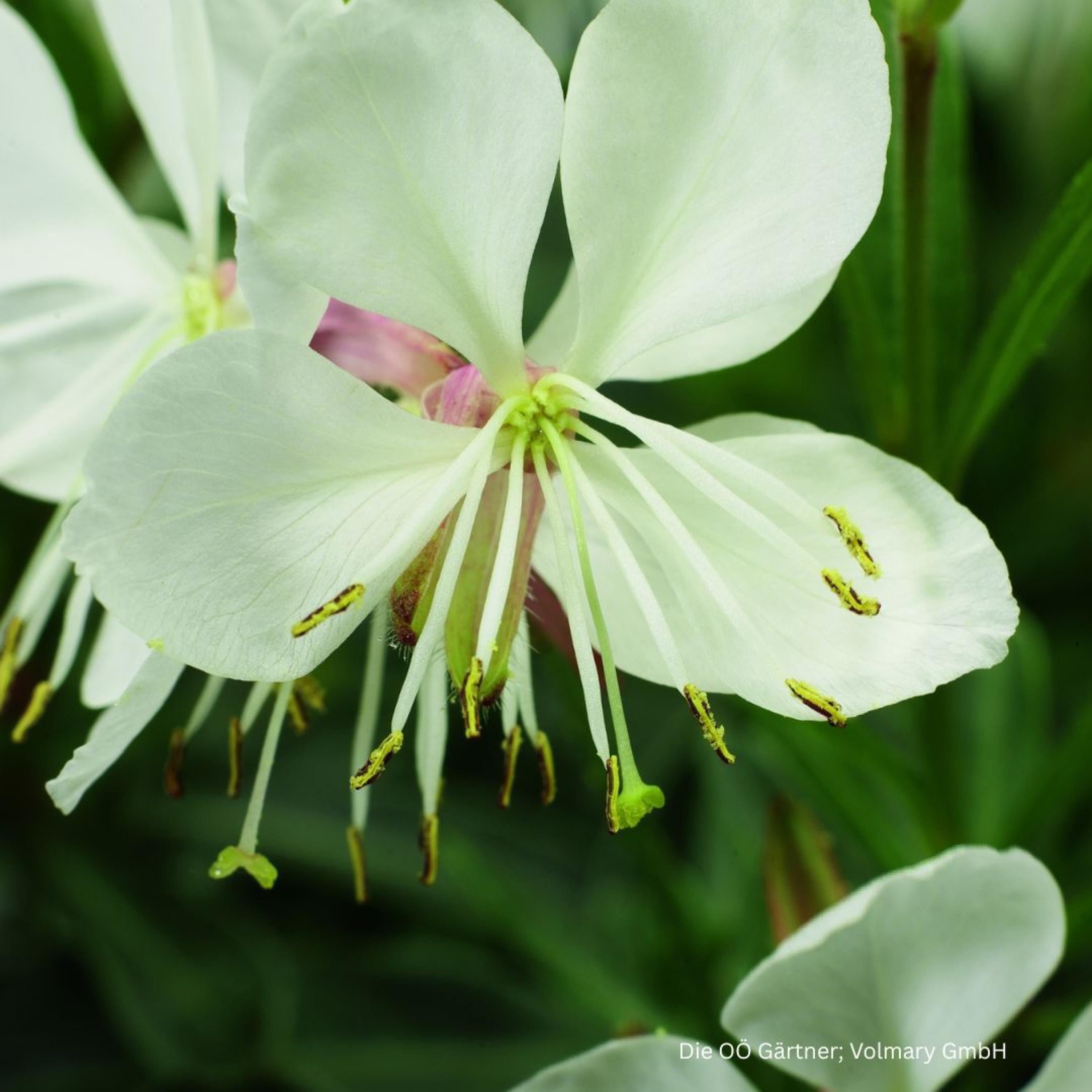 Die Bienen-Prachtkerze „Wilde Hilde“ besticht durch ihre außergewöhnliche Leichtigkeit. Zahlreiche kleine, reinweiße Blüten sitzen auf locker aufgebauten, verzweigten Rispen und wirken wie schwebende Schmetterlinge. Schon ein leichter Wind bringt Bewegung in die Pflanze und lässt das Beet lebendig erscheinen. Gleichzeitig ist sie eine wertvolle Nahrungsquelle für Bienen und viele andere Insekten.