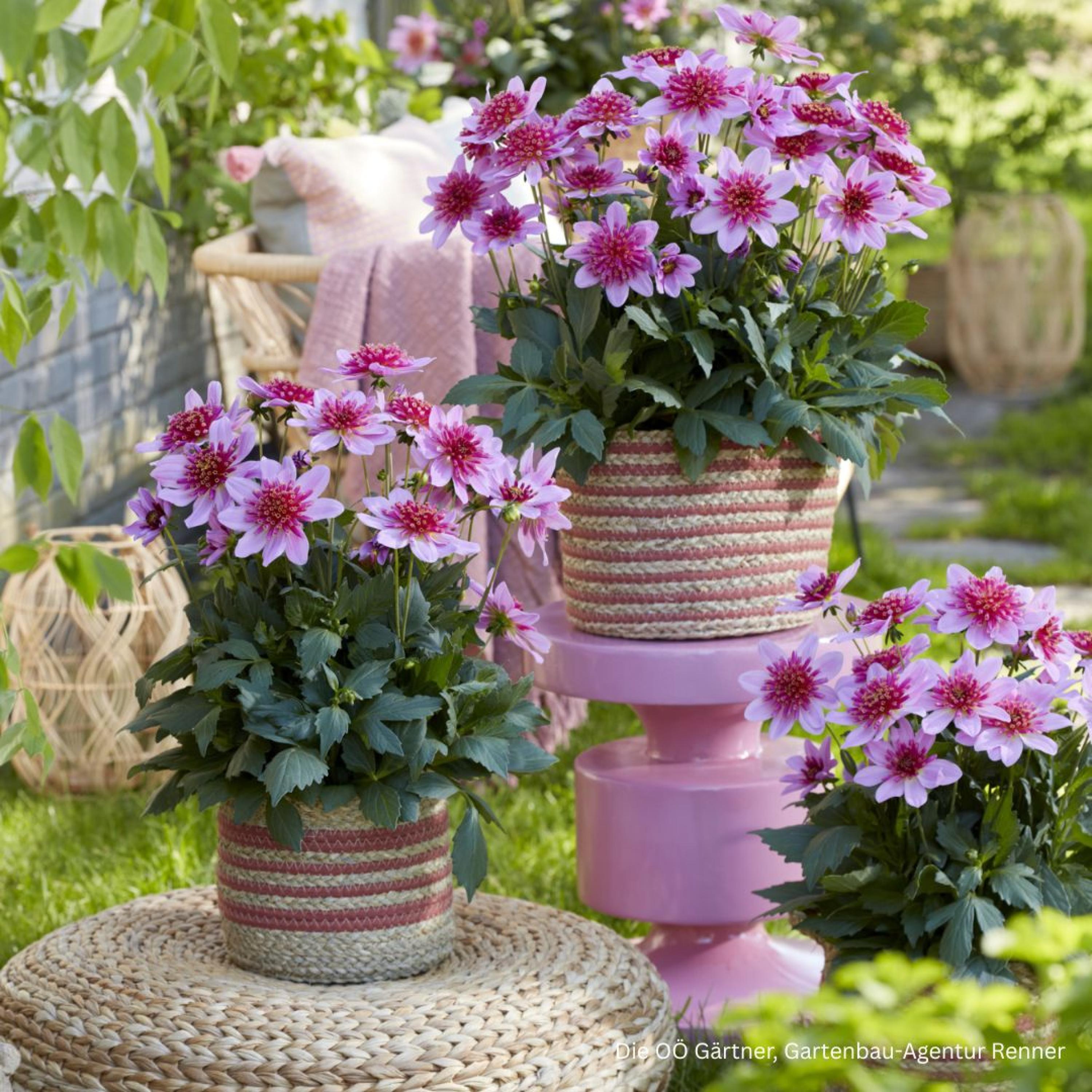 Die „Fesche Frieda“ steht für üppige Blütenpracht und starke Wirkung im Garten. Sie ist eine echte Neuheit und das bestätigen Dahlienkenner allerorts. Mit ihren intensiv gefärbten Blüten setzt sie lebendige Akzente und bringt sofort Farbe in Beete und Pflanzgefäße. Sie eignet sich sowohl für klassische Blumenbeete als auch für Töpfe auf Terrasse und Balkon. Überall dort, wo Blütenfülle gefragt ist, entfaltet sie ihre Wirkung und sorgt für ein stimmiges Gesamtbild. Durch ihre lange Blütezeit begleitet sie durch den gesamten Sommer und bringt immer wieder neue Farbhöhepunkte.
